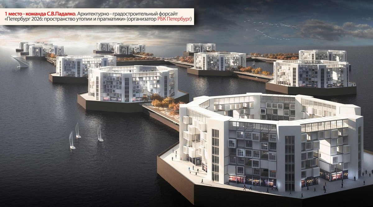 Решением экспертного жюри первое место заняла команда Сергея Падалко. В основе смелой концепции проекта этой команды лежит использование так называемого "адаптивного модуля" - кубика три на три метра. Проектировщики видят здания будущего, собранные из одинаковых по форме, но разных по технологической начинке кубиков. Такие кубические ячейки-дома смогут самостоятельно плавать по водной глади Невы на плотах, быть ячейками эко-небоскребов, из них можно будет даже собрать форт на Финском заливе. При этом, как подчеркнули авторы, роль архитектора уходит на второй план, остается только социальный интерес. Несмотря на то, что многие архитекторы не разделили мнения, что традиционная архитектура станет атавизмом, проект признали самым смелым и продуманным.