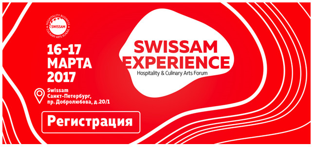 /Март, 2017/ 16-17 марта 2017 года в Санкт-Петербурге пройдет Первый Международный Форум в сфере гостеприимства, ресторанного бизнеса и кулинарного мастерства Swissam Experience. Hospitality&Culinary Arts Forum. Форум объединит ведущих профессионалов из России и зарубежных стран, а также представителей бизнеса, массмедиа, образовательных структур и общественных организаций.