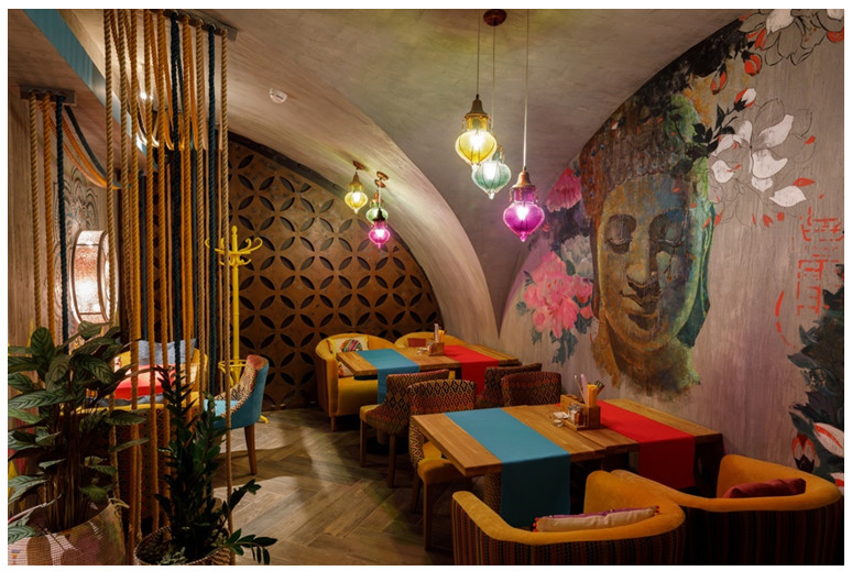 Идею любви к путешествиям воплощает и интерьер ресторана. Ласковое солнце, живописные закаты, энергия океанов, обилие зелени и цветов в азиатских странах вдохновили на создание интерьера, который погружает гостей в атмосферу отпуска. Яркие цвета, сочные паттерны, пряные ароматы, диковинные предметы и аутентичные детали декора - всё призвано перенести вас мыслями прямо к берегам Индийского океана, даже если за окном бушует непогода.