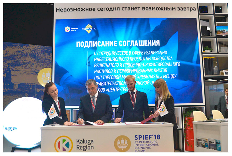 Соглашением предусматривается строительство завода по производству решетчатого и просечно-профилированного настилов и перфорированных листов под торговой маркой Reshnastil на территории индустриального парка "Ворсино" в Калужской области. Прогнозируется, что объем инвестиций составит более 200 млн. рублей, количество новых рабочих мест - 50-60 человек.